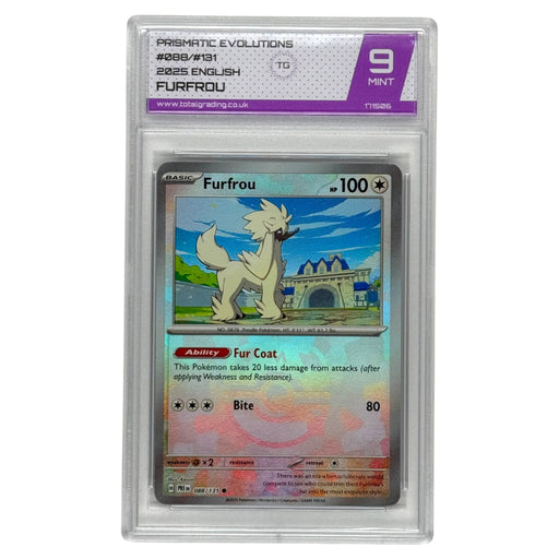 Furfrou 088/131 Prismatic Evolutions 2025 English Grade: 9 Mint Graded and slabbed by Total Grading UK 171506
